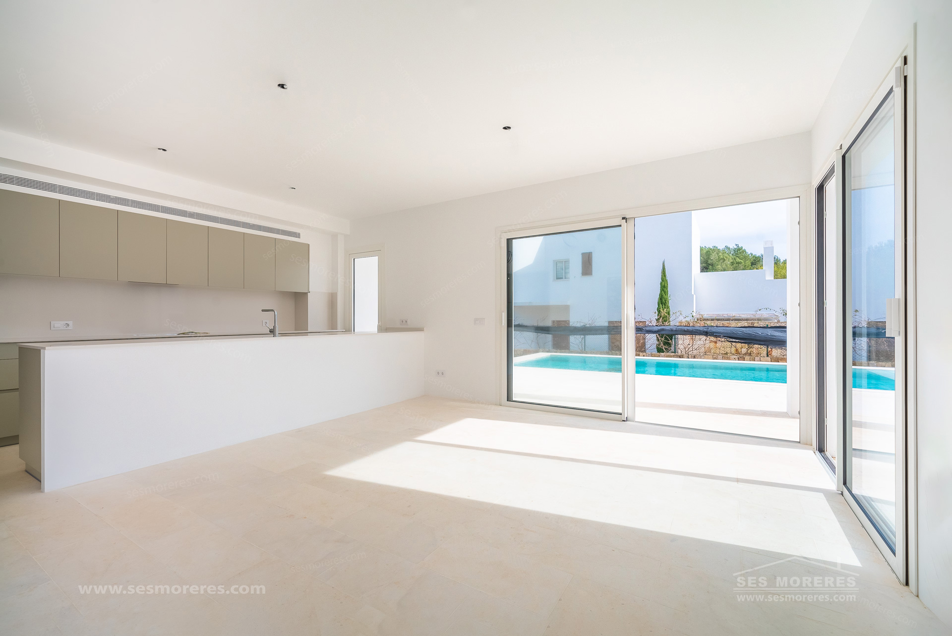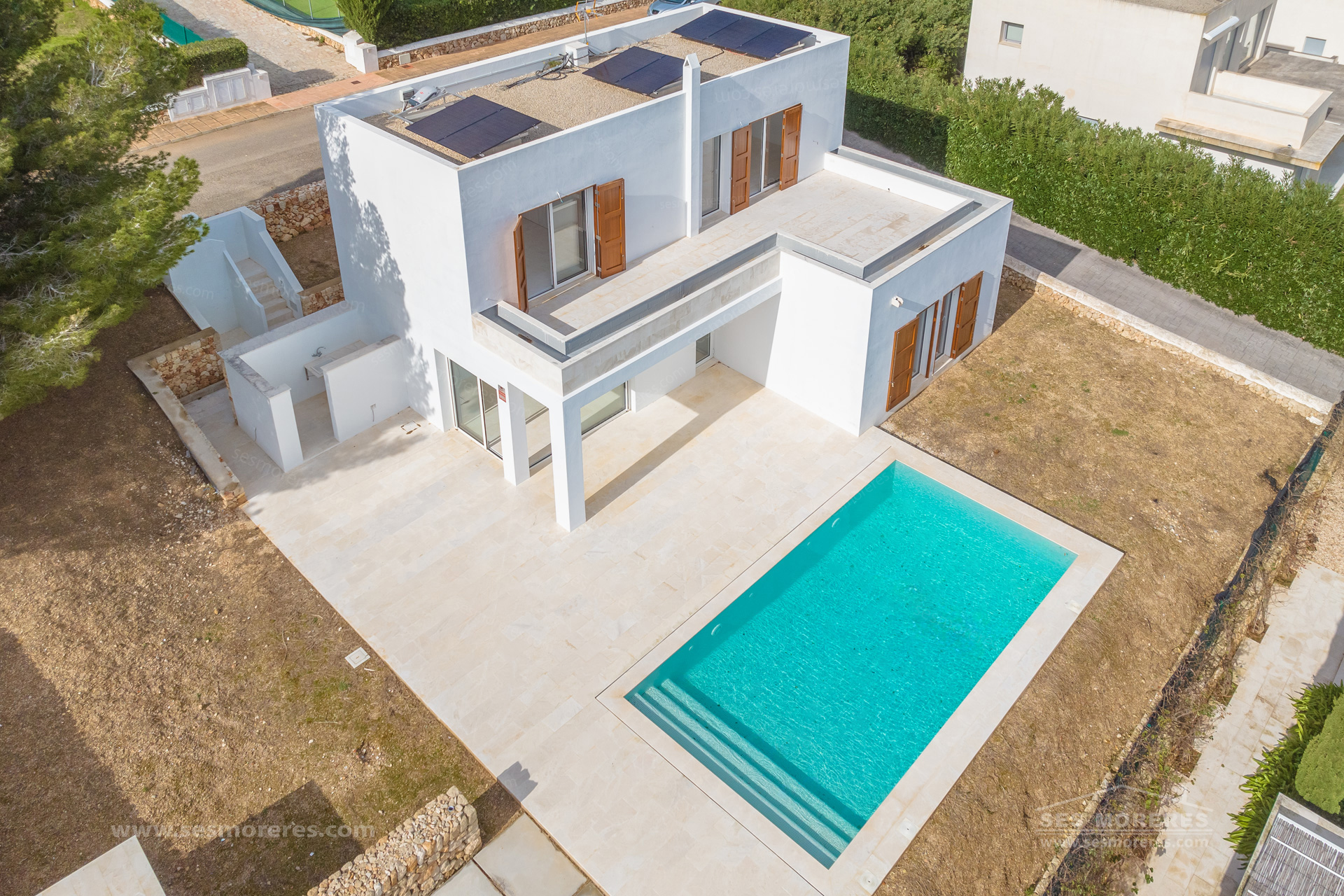 This elegant, newly constructed villa is set within the sought-after residential area of Coves Noves, just a short distance from Addaia marina, the charming fishing village of Cala Na Macaret, and the sweeping horseshoe bay of Arenal d’en Castell.