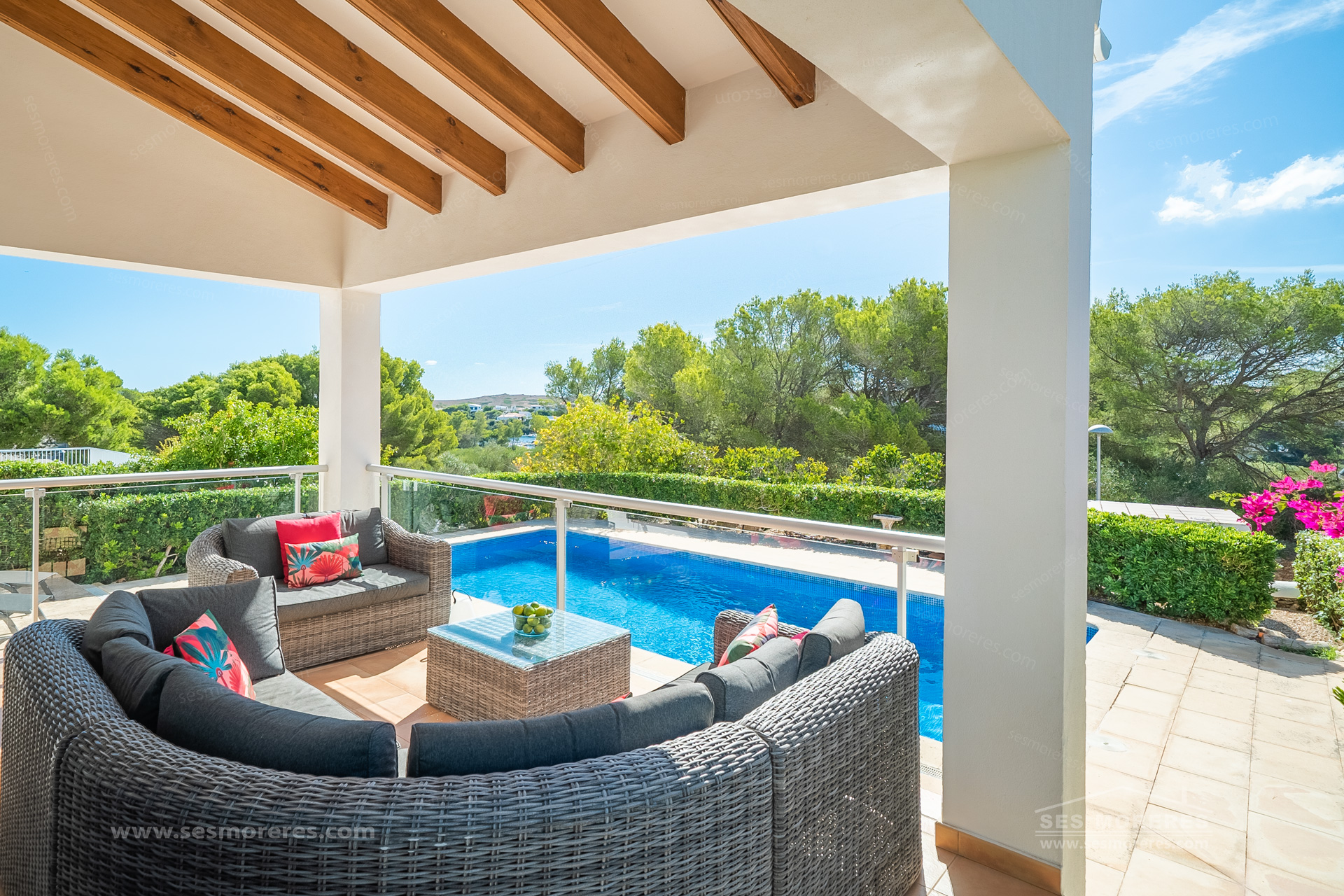 Discover your Mediterranean retreat in the quiet area of Cala Molí, located near the sea, in an ideal location between the marina of Port Addaia and the picturesque fishing village of Cala Na Macaret, and within walking distance of the wide sandy beach of Arenal d'en Castell.