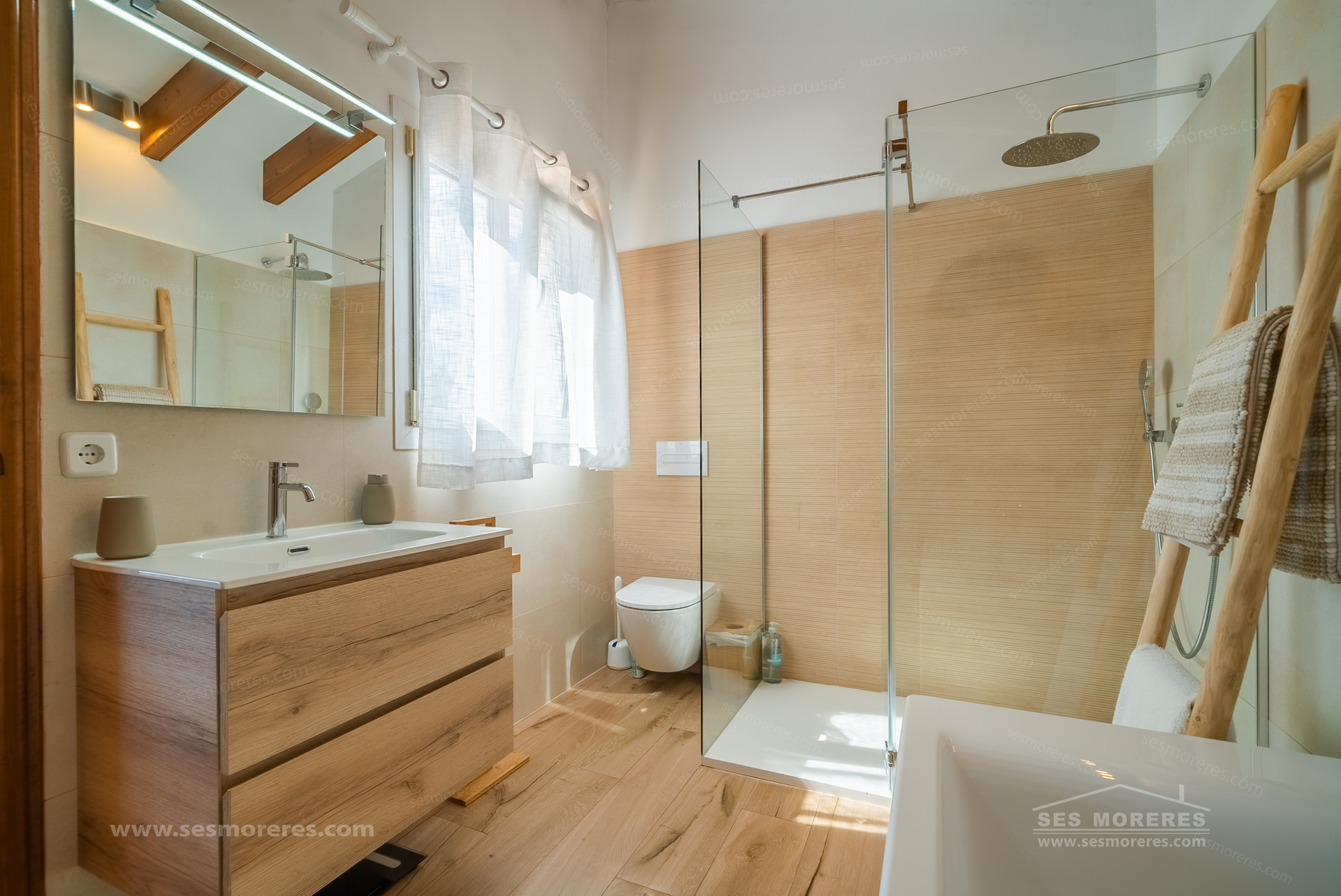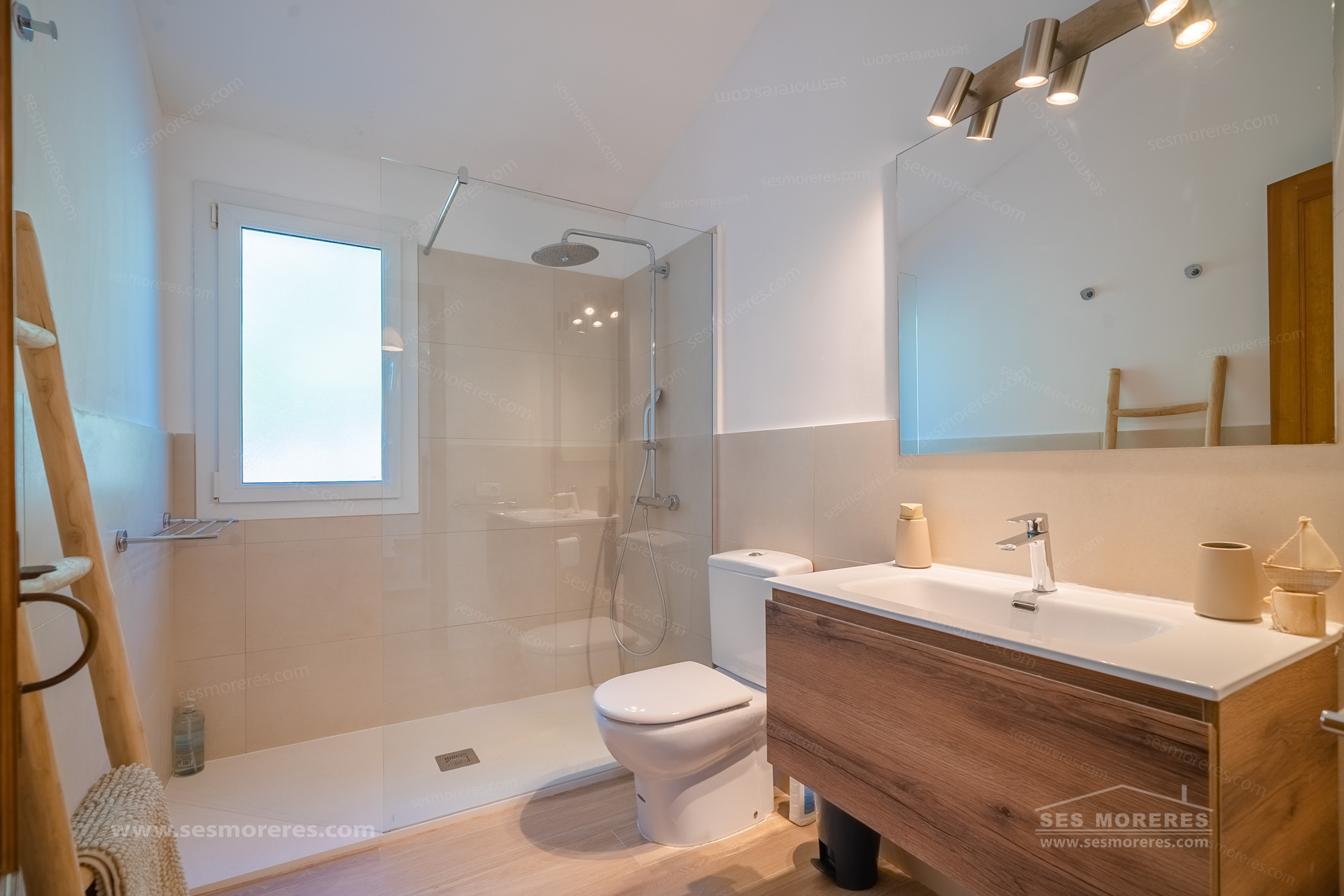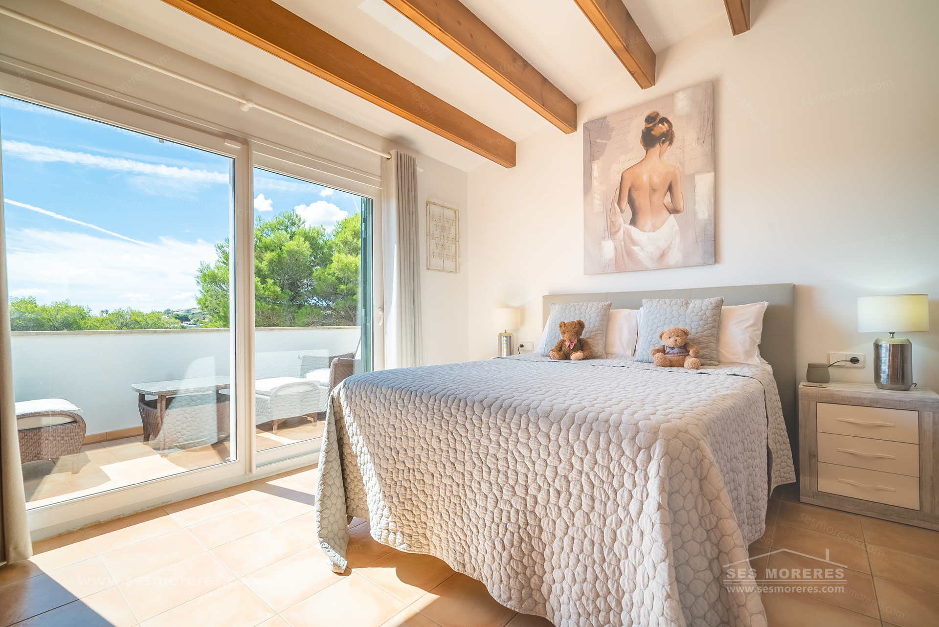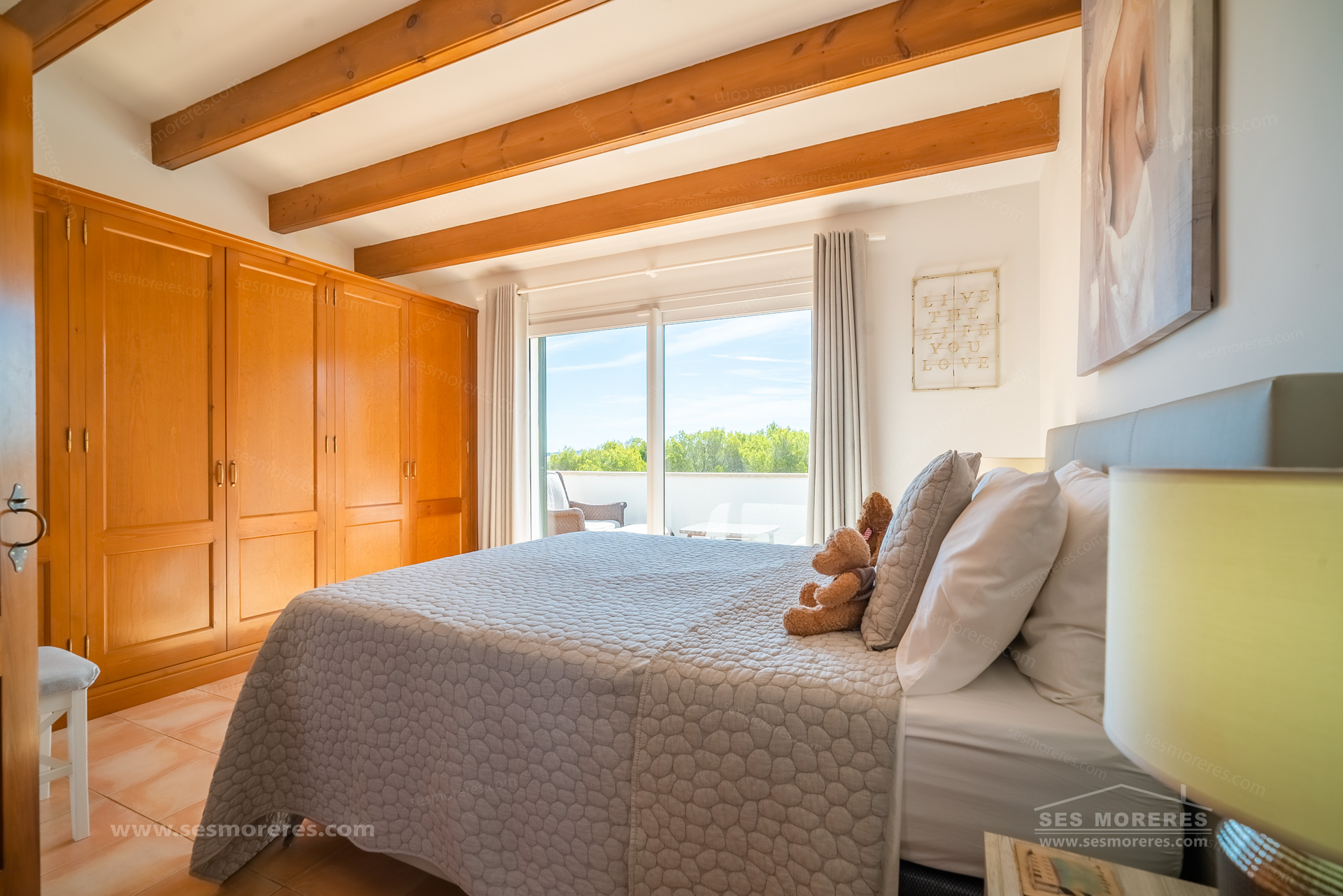 On the upper floor, the master suite has an en-suite bathroom and a sunny terrace from which you can admire the beautiful views of the natural surroundings of Cala Moli.