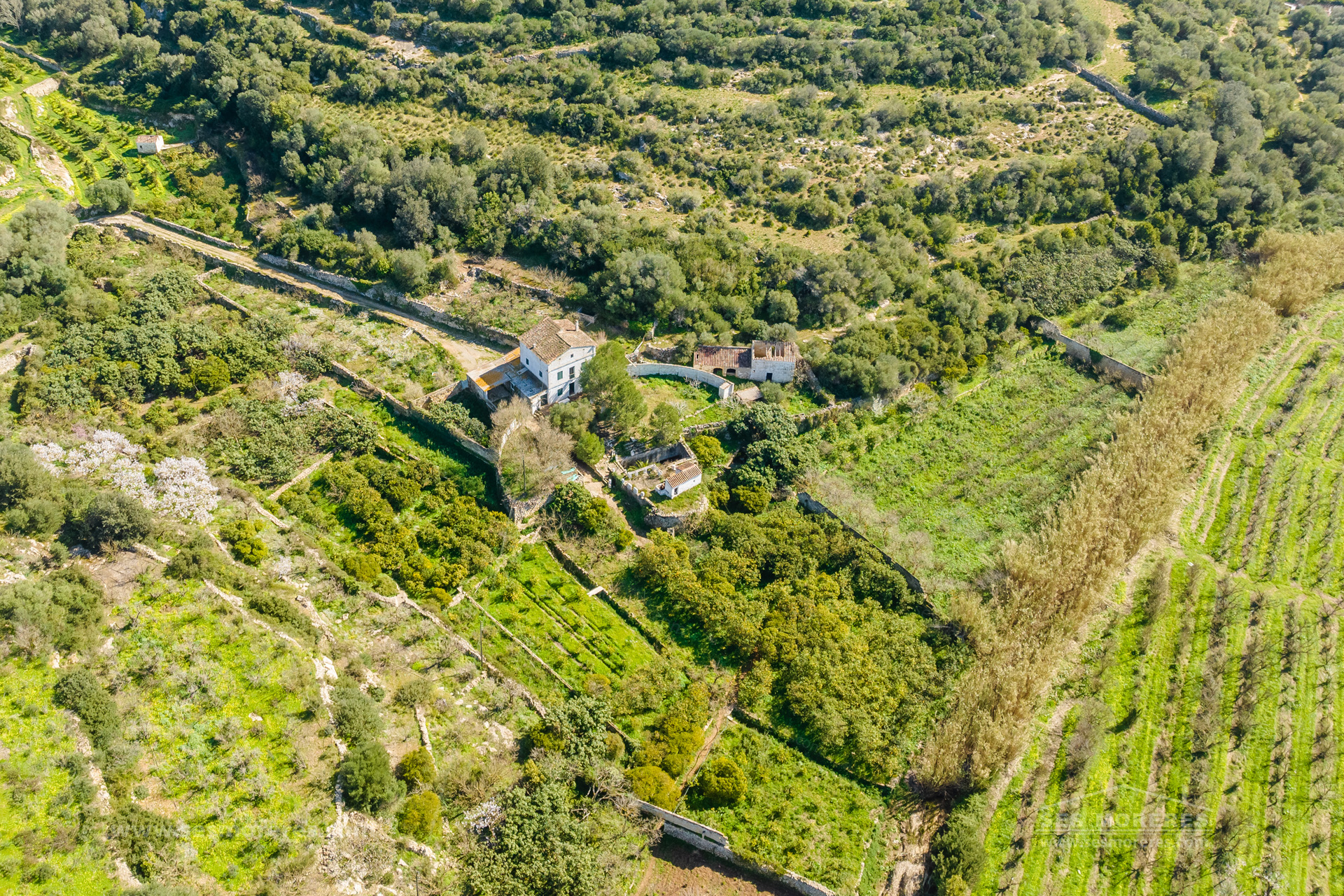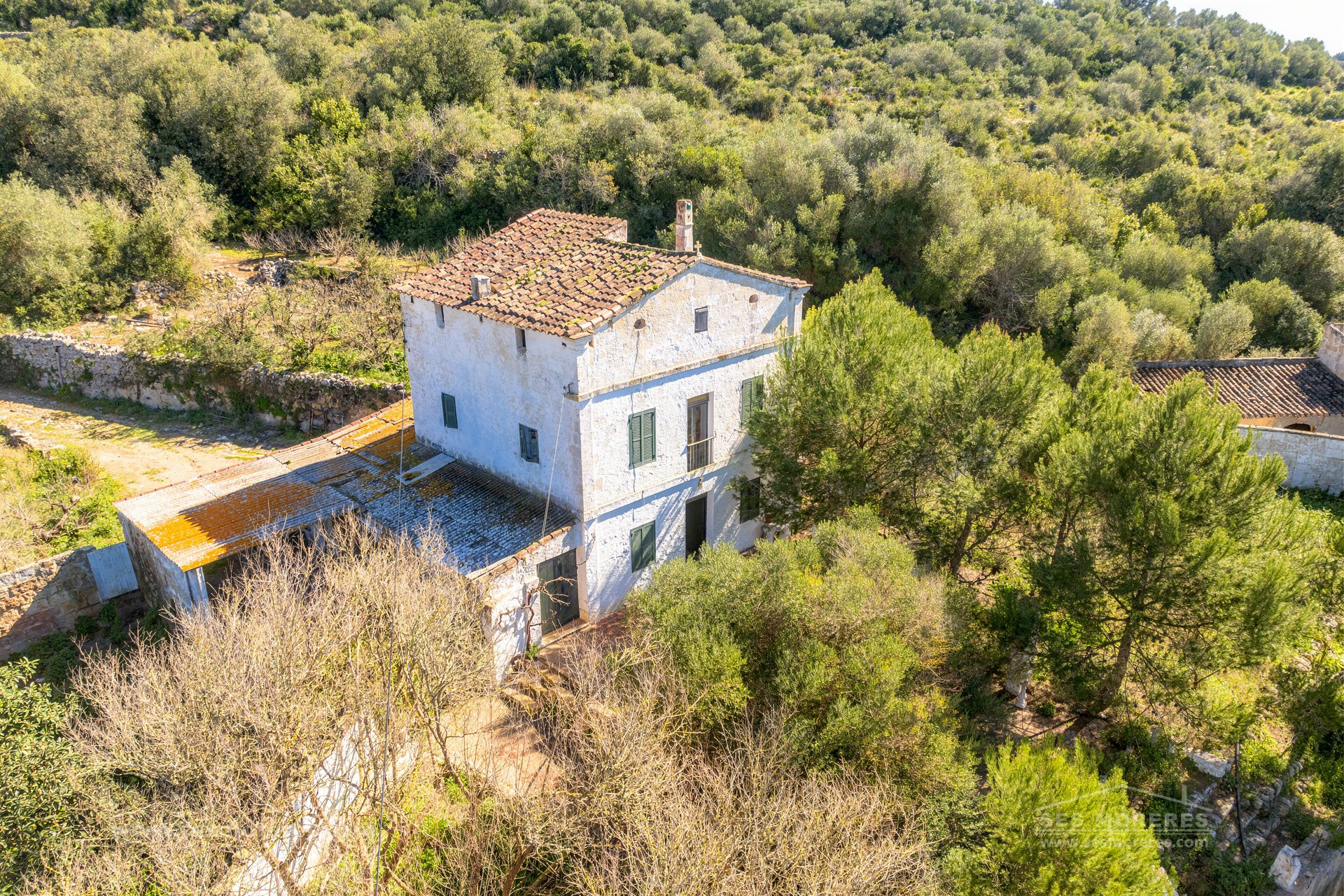 The property houses an old country house with approximately 225 m² of built area, as well as several auxiliary buildings, such as the old cattle shed with unique charm, a traditional cistern, and an old water well, witnesses to the agricultural heritage of the place.