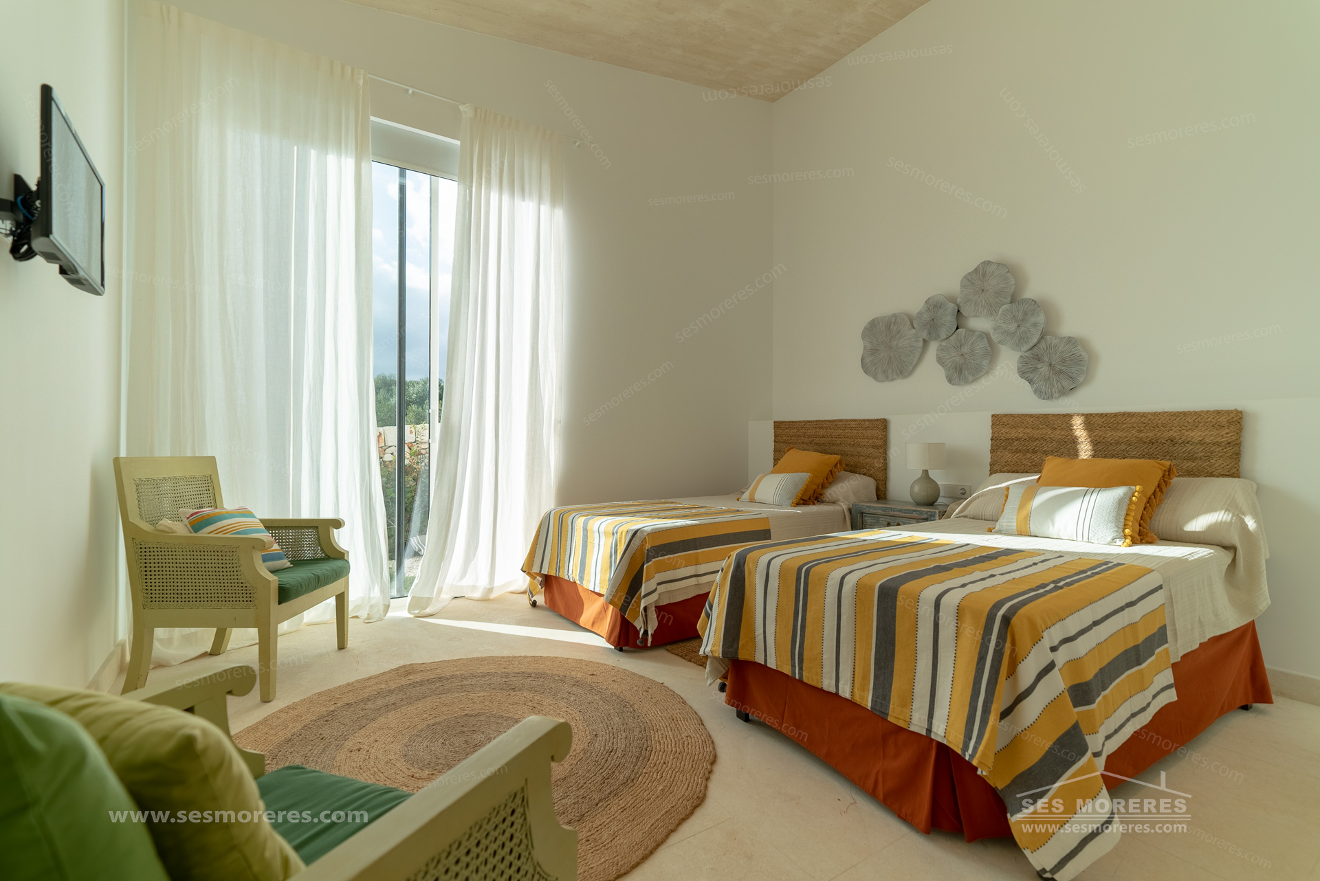 The villa offers five spacious bedrooms, each with its own en-suite bathroom, and is equipped with a modern air-source heating and cooling system for year-round comfort.