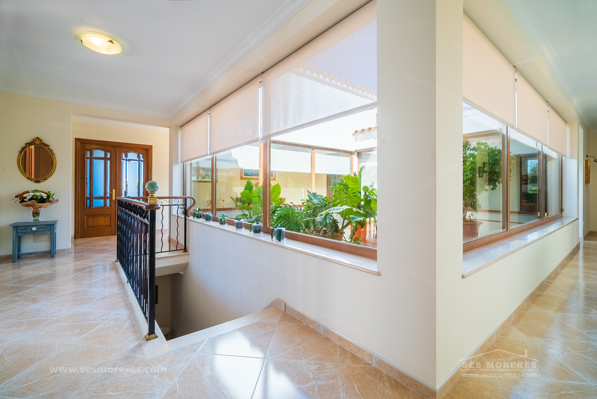 The main house, of 300 m² on one floor, is organized around a bright interior courtyard that fills all the rooms with natural light and creates a warm and welcoming atmosphere. It has five bedrooms, two full bathrooms, and a guest toilet, as well as a large kitchen with an office and laundry room, a spacious living room, and a separate dining room.