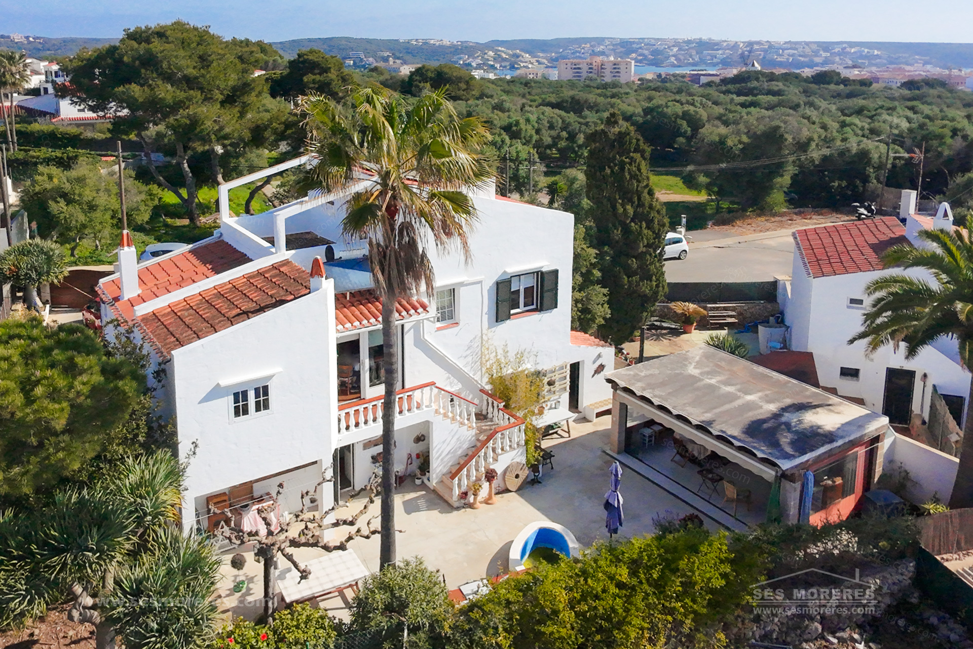 Son Vilar is a family-friendly, quiet urbanization surrounded by greenery, located between Mahón, Es Castell, and Sant Lluís. This property, in particular, is located in one of the most pleasant areas of the environment: in front of a large green area and with a difficult-to-match privacy.