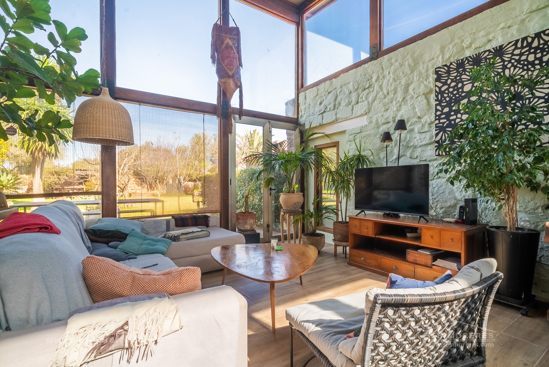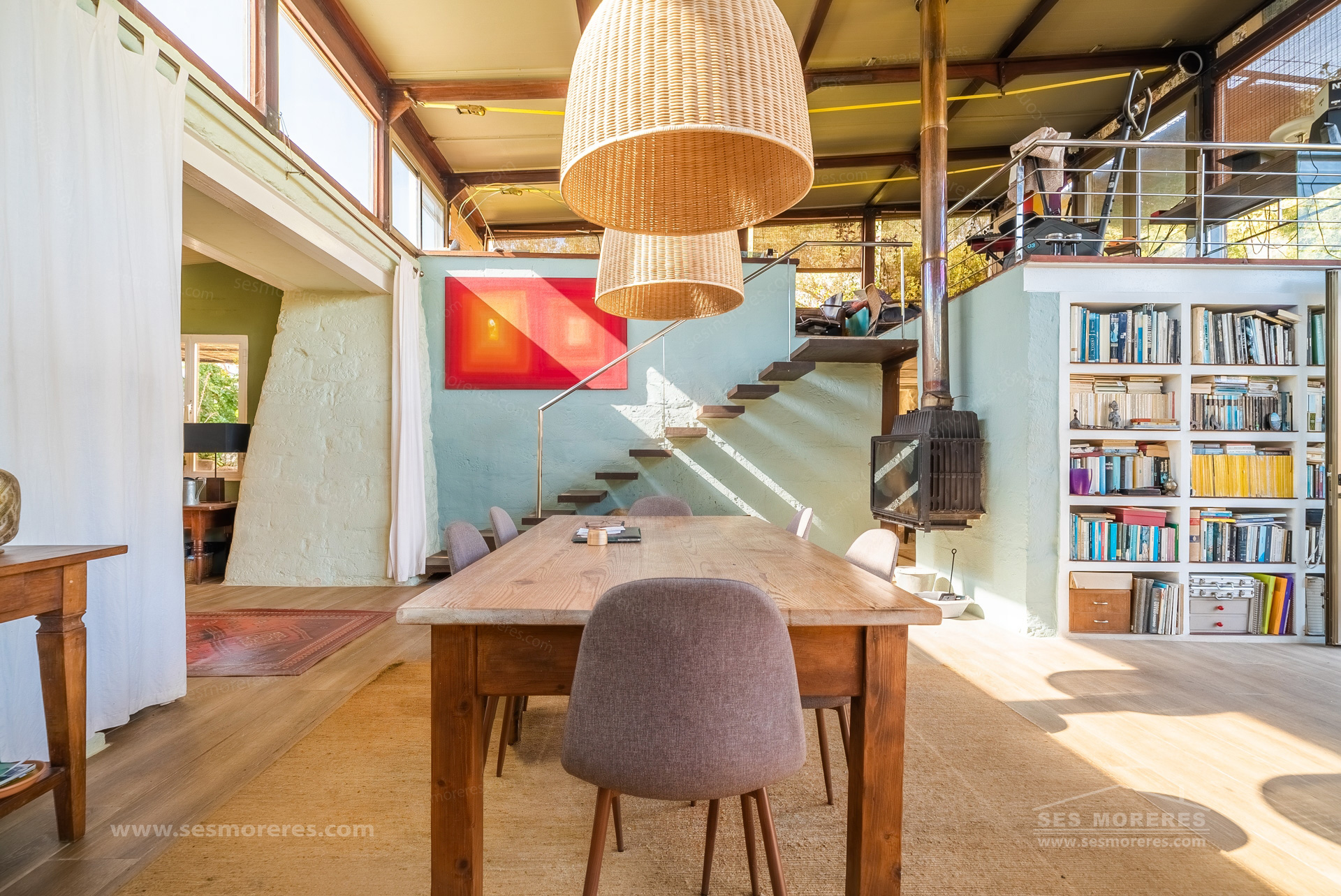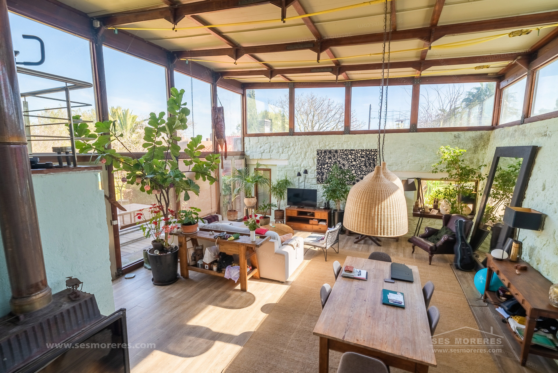 The main house is the most unique element. It is part of a traditional countryside construction reinterpreted with a modern and bohemian style approach, maintaining its essence but transforming the spaces with high ceilings, wooden beams with iron joints, and large windows that bring natural light and connect with the surroundings.