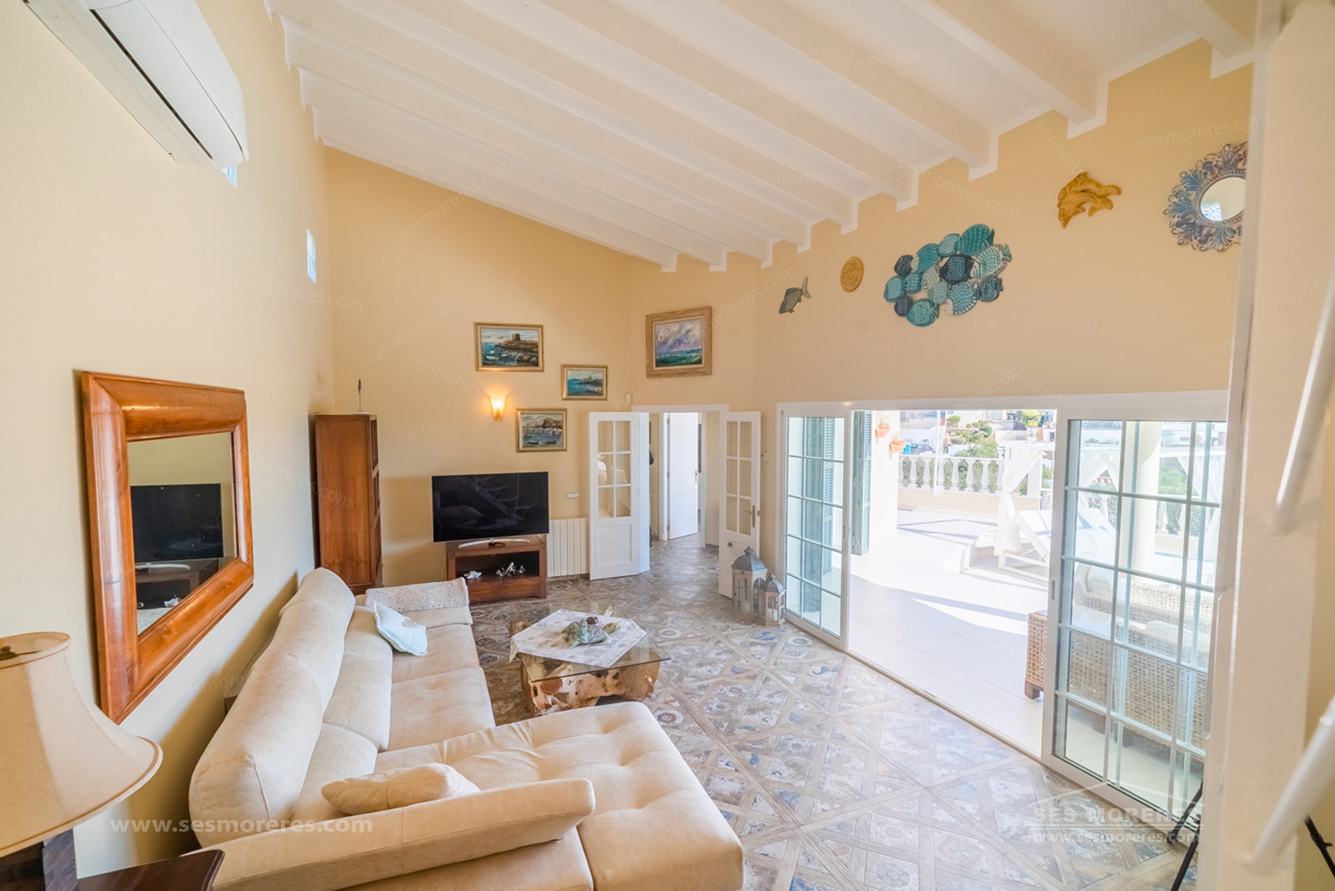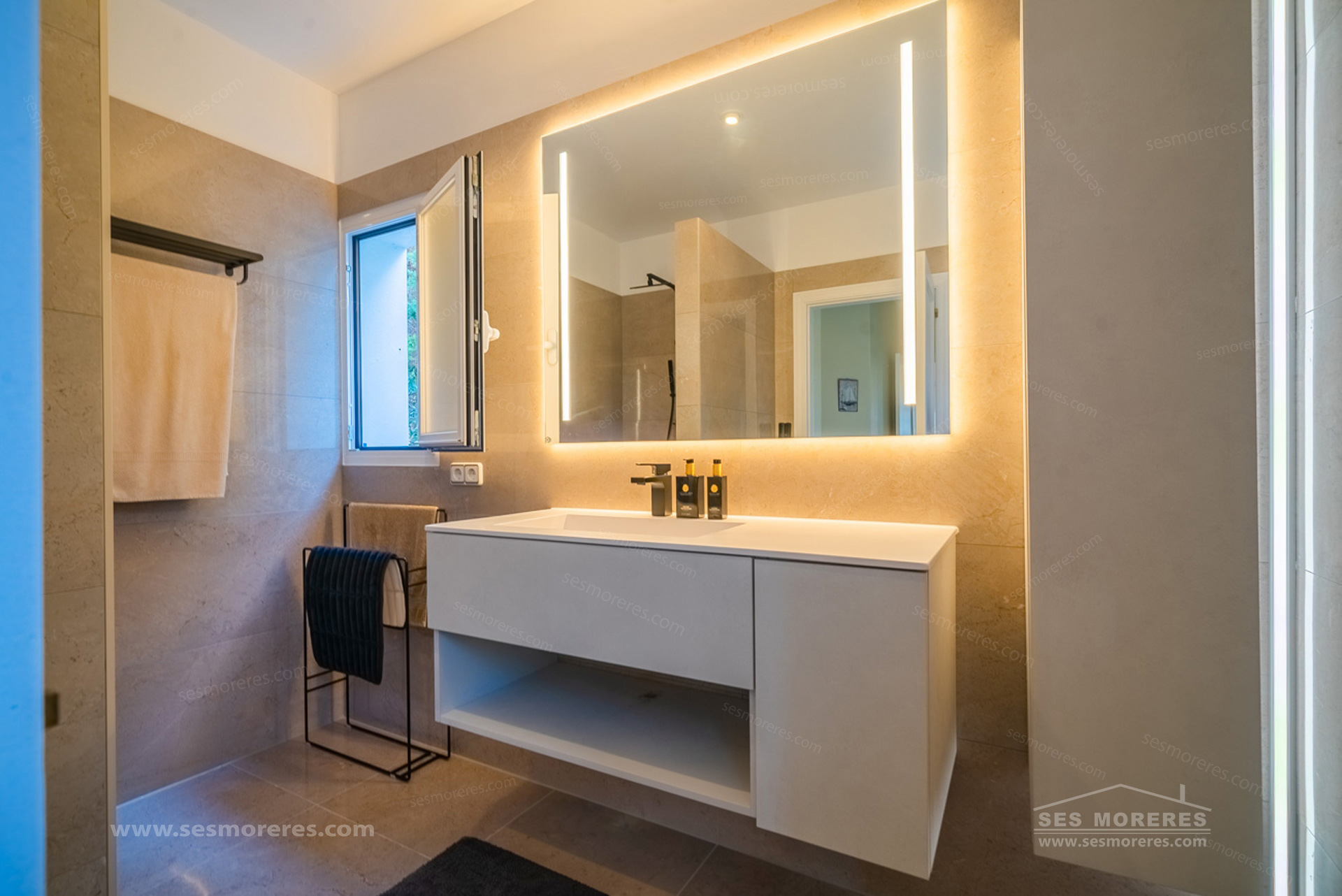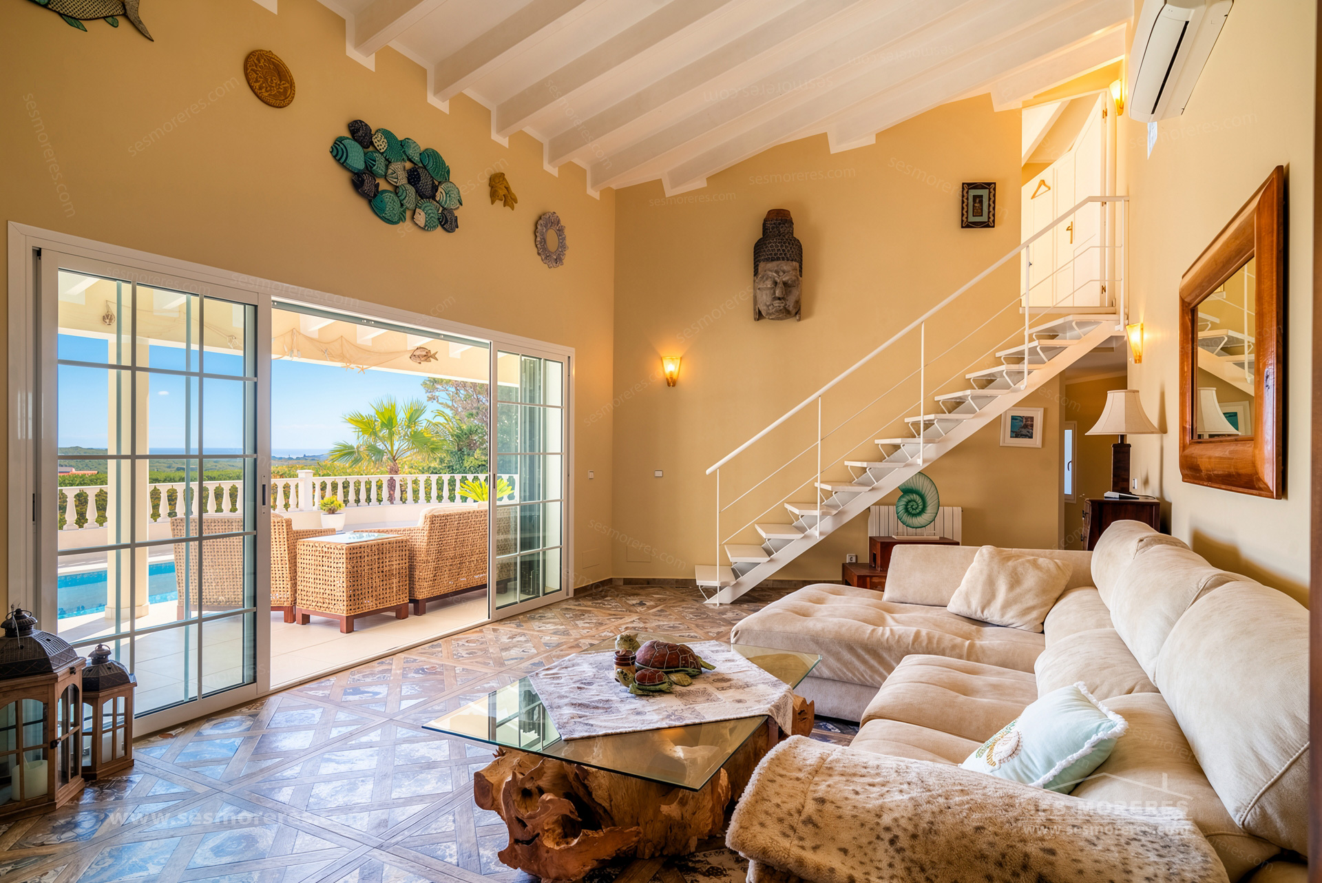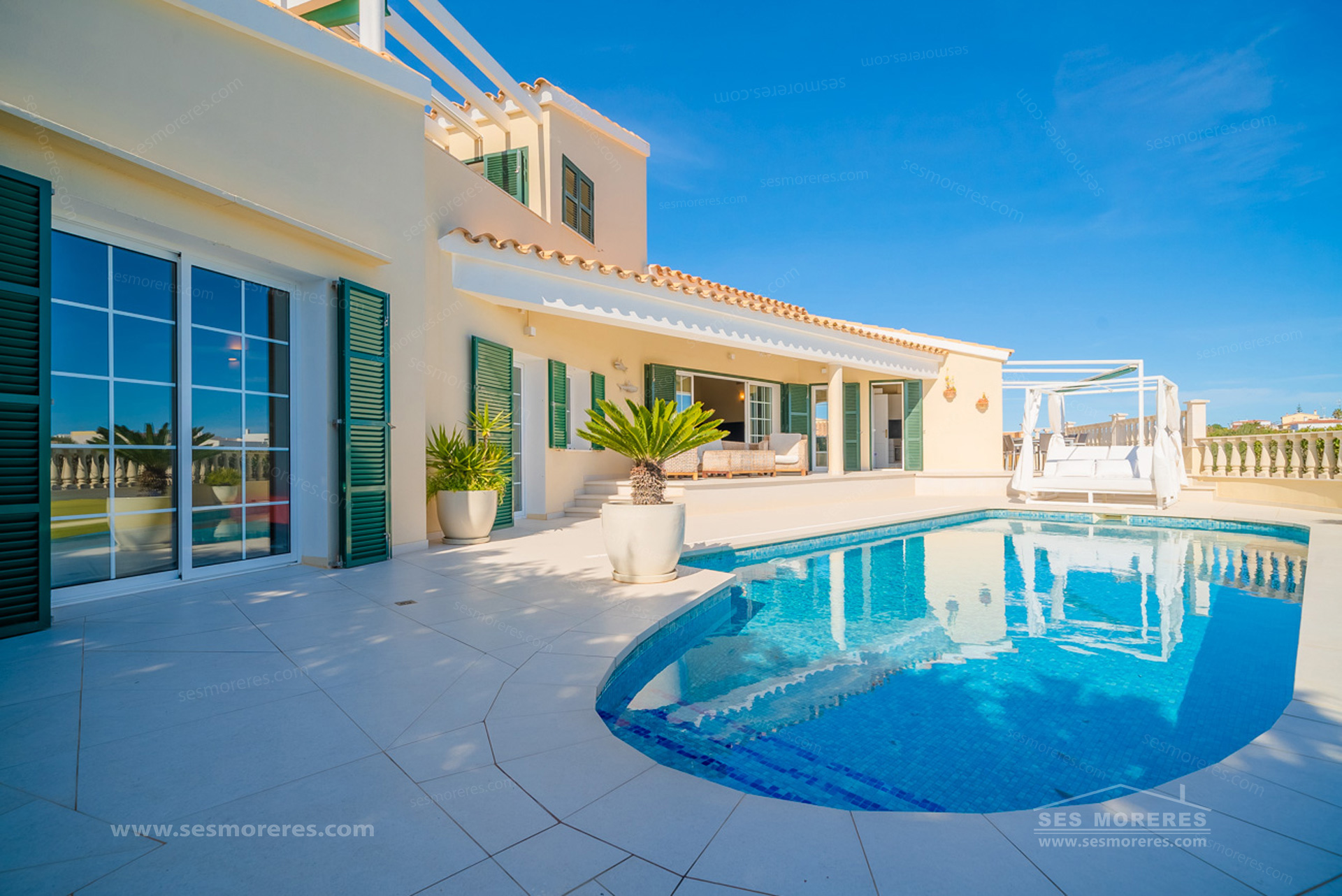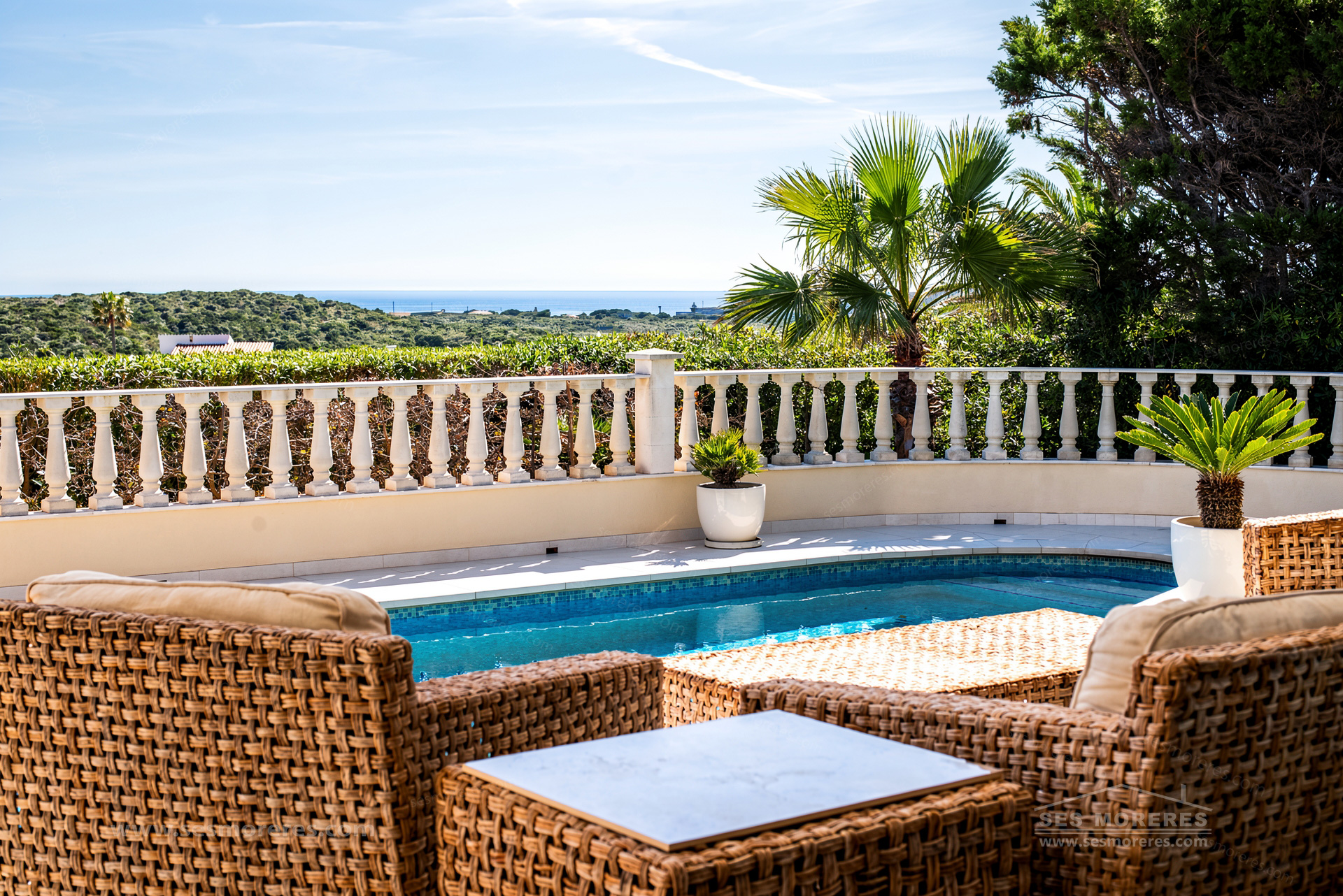 Outside, the private pool, spacious panoramic terraces, and low-maintenance garden stand out, ideal for enjoying the Menorcan climate all year round. It also has hot/cold air conditioning, double glazing, and underfloor heating in the bathrooms.