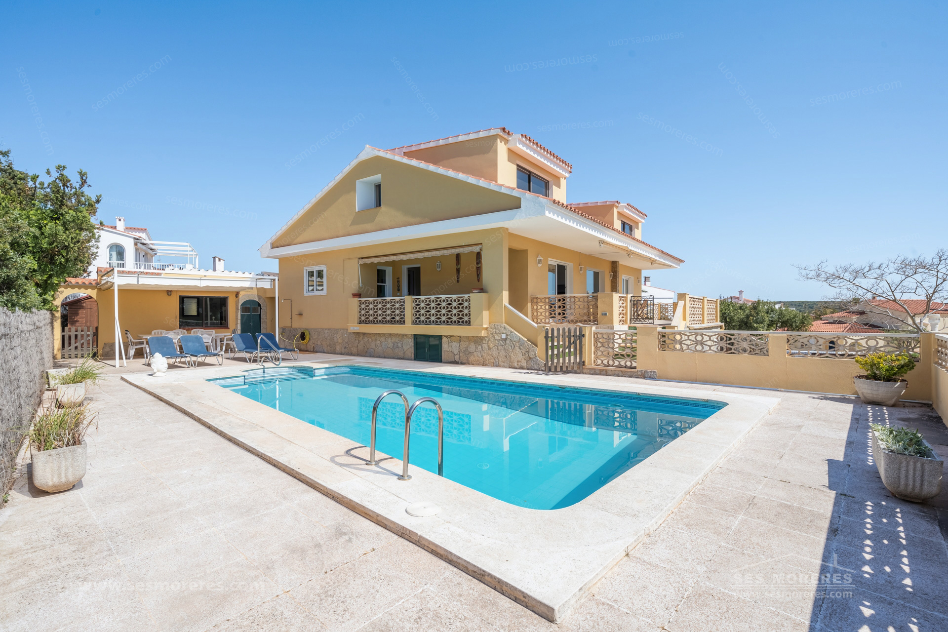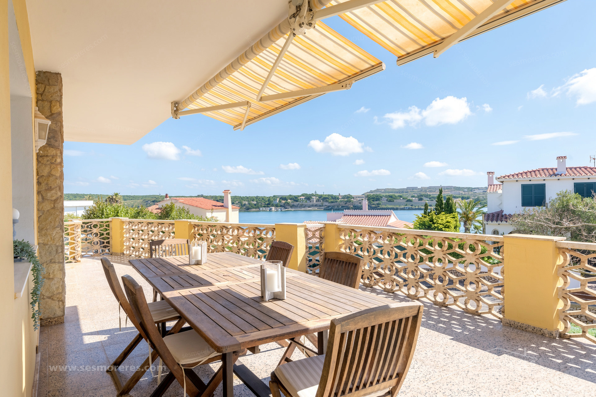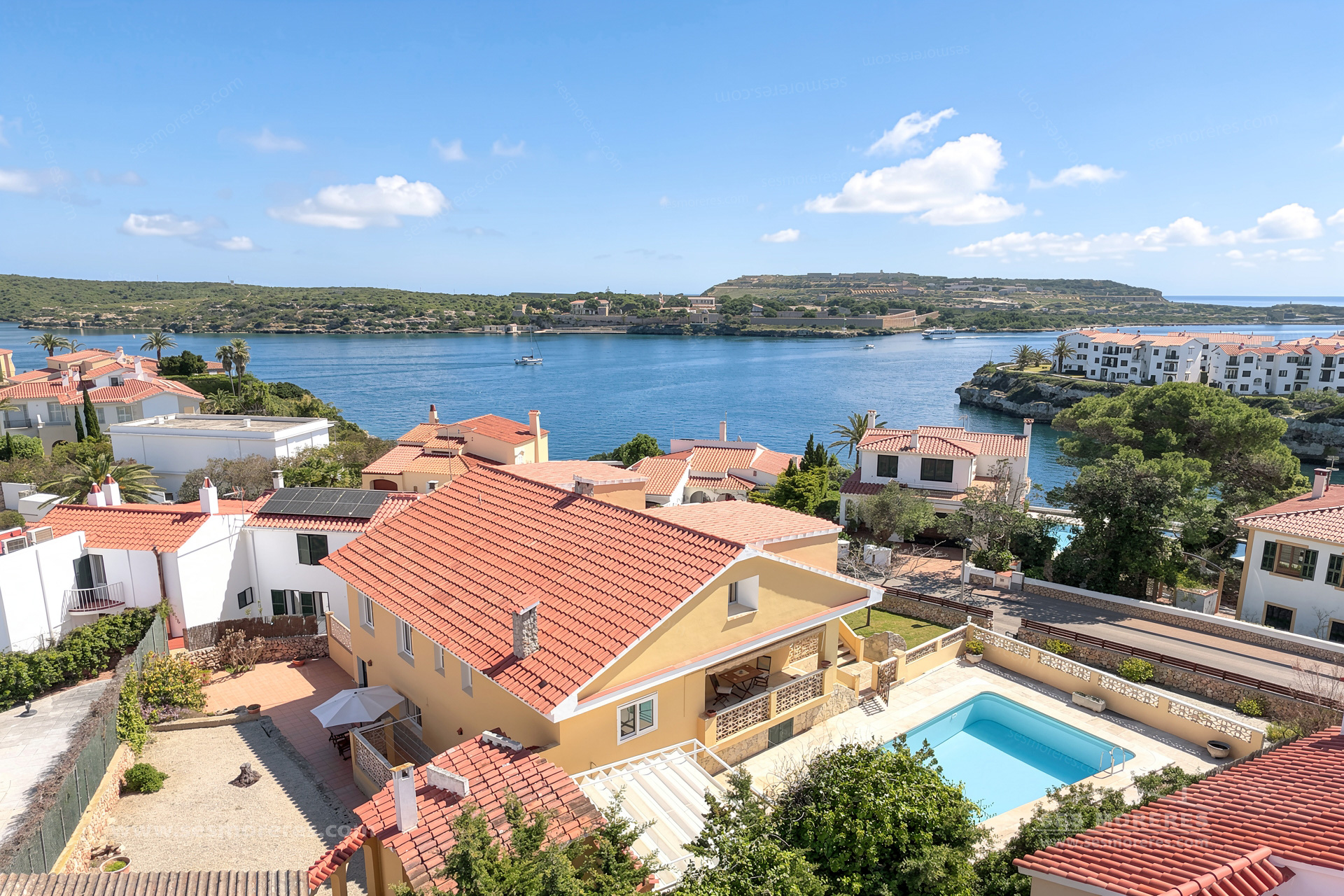À Santa Anna, à quelques minutes de Mahón et à quelques pas de Cales Fonts, cette maison individuelle de trois niveaux se distingue par ses vues imprenables sur le port de Mahón.