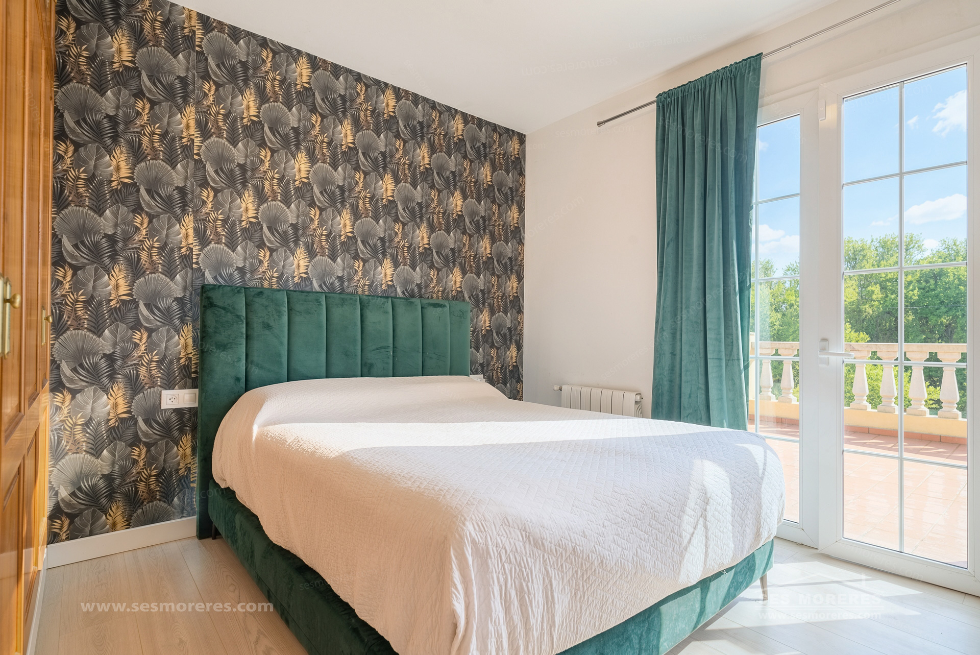 The villa has a total of five bedrooms, three of them on the upper floor, including the master bedroom with an en-suite bathroom.